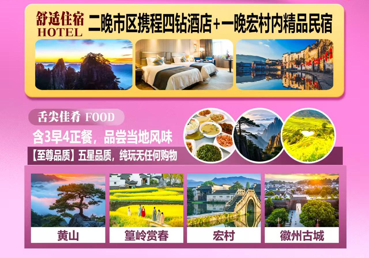 🌈大美黄山、画里宏村、婺源篁岭、徽州古城【双高纯玩】四日游